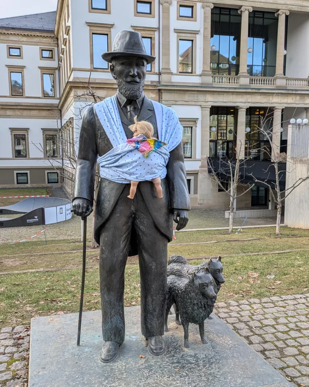 Caring Men ist eine gesellschaftliche Aktion für mehr Gleichstellung in Sorgearbeit. Mit einer künstlerischen Intervention im öffentlichen Raum macht das Projekt sichtbar, wie ungleich Care-Arbeit in Deutschland verteilt ist – und warum Väter eine zentrale Rolle für echte Gleichberechtigung spielen. Dafür werden um den Equal Care Day (1. März 2026) männliche Statuen überall in Deutschland mit Puppen und Tragetüchern ausgestattet und als sorgende Figuren neu gelesen.
